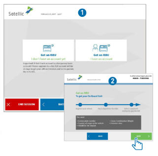 4. Нажмите Get an OBU without account (Получить OBU без учетной записи) 1 и нажмите NEXT (ДАЛЕЕ) 2.