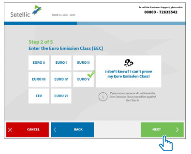 6. Введите европейский экологический класс автомобиля и нажмите NEXT (ДАЛЕЕ).