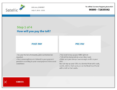 12.Выберите способ оплаты дорожного сбора. В качестве примера в этой процедуре рассматривается предоплата.