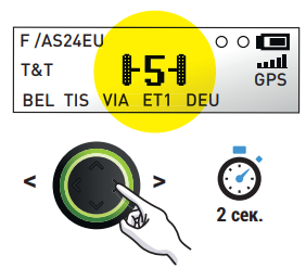 При любых условиях количество осей, указанное на вашем БУ, всегда должно быть равно общему количеству осей транспортного средства (тягач + прицеп). Длительное нажатие (2 сек.) вправо > или влево < , чтобы изменить количество осей, прокрутите до нужной цифры и выберите ее.