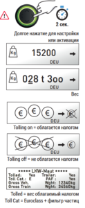 Кнопка «влево-вправо»:меню управления и настроек (количество осей, вес, взимание пошлин, звук…)