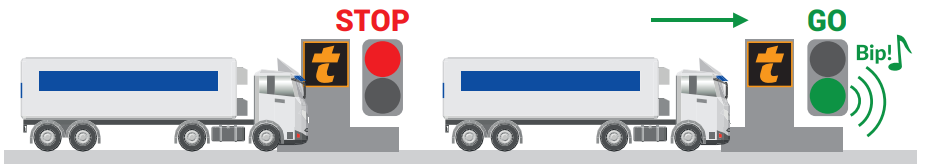 Проезжайте, когда горит зеленый свет и шлагбаум поднят.