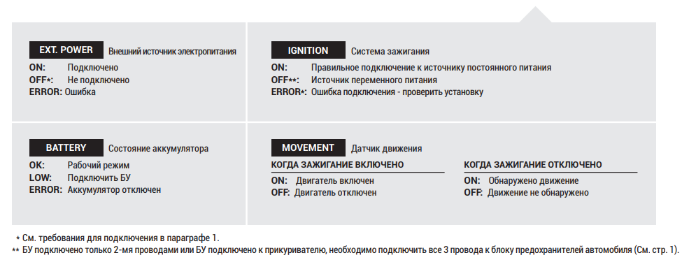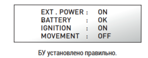 Сразу после подключения БУ начинается автоматическая процедура инициализации (около 2 минут).