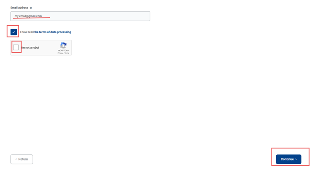 - Open the received email and click on the link in it — a form will open in the browser. Please fill in all the fields: