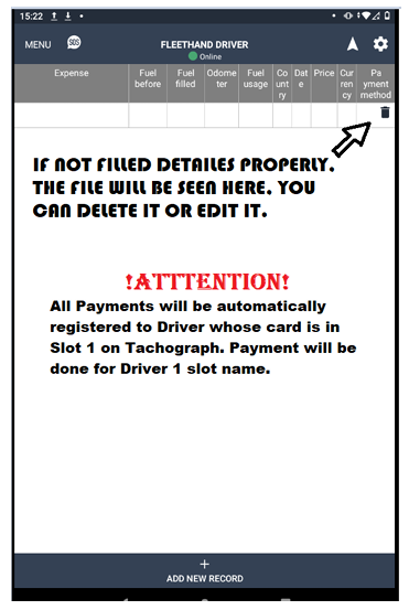 • Manual entry for VDO tachographs
